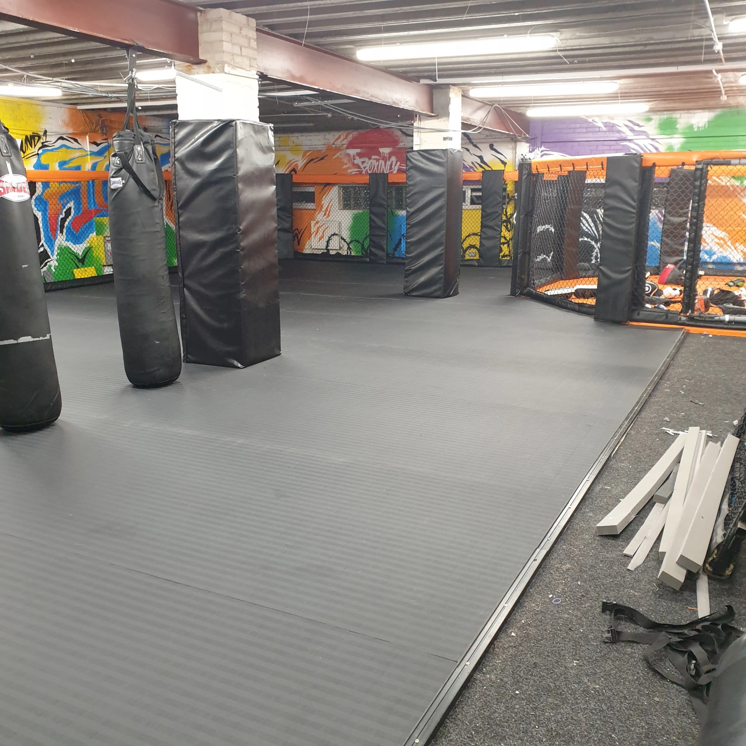 It also has a heavy duty tatami PVC surface. This increases durability and longevity and allows boots and trainers to be worn if required.